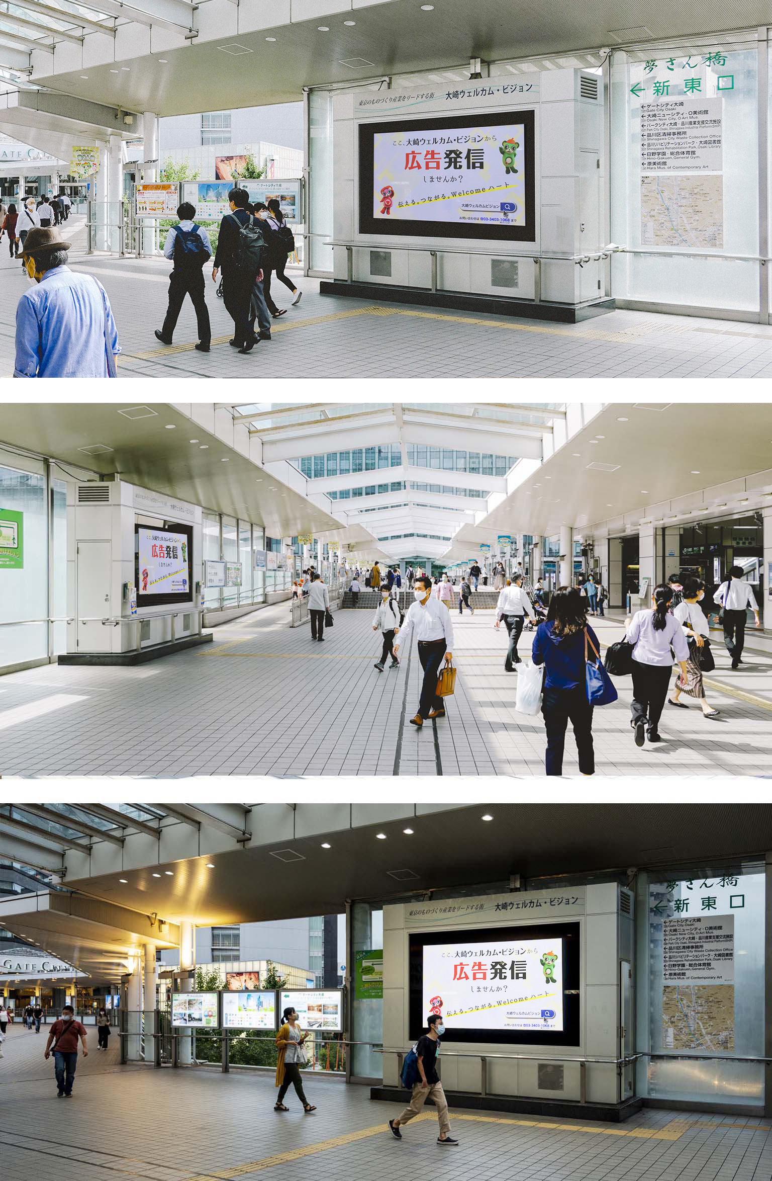 大崎駅南改札口正面の大迫力メディア「大崎ウェルカム・ビジョン」